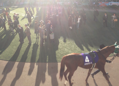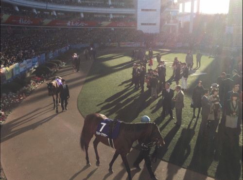 逆光が眩し過ぎますけど2階の馬主席からのアングルです。
