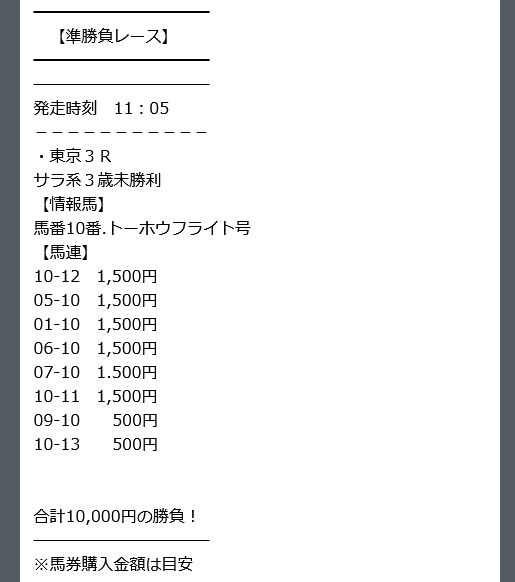 勝負レースに選択したレースは情報馬が人気薄でしたが、