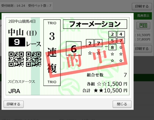確勝レース・現代版を理解していないと獲れない馬券なので証拠品として買っておきました。