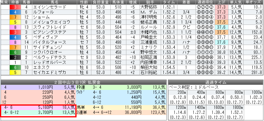 2着馬のロードソレイユは5番人気で、それ以外馬達は全てが2ケタ人気馬。