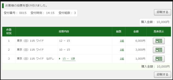 私のお恥ずかしい馬券は以下の通りです