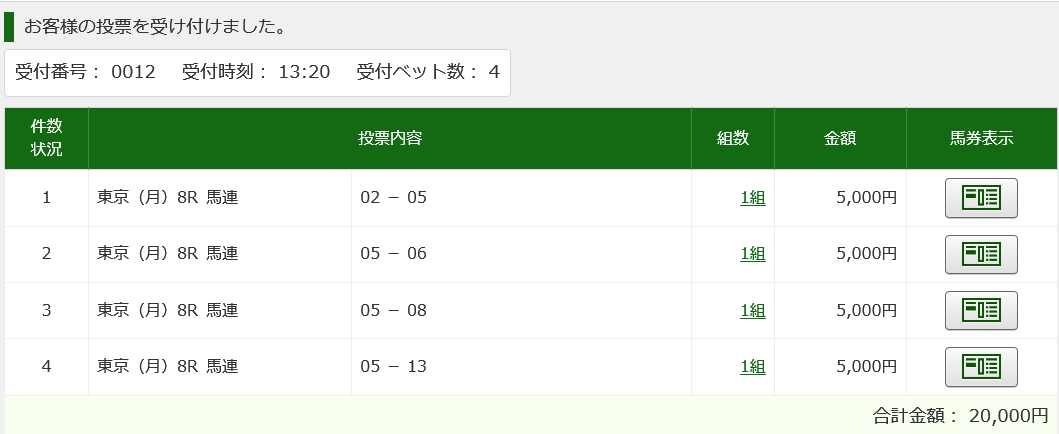 買い目としてご提供したものは3戦1勝