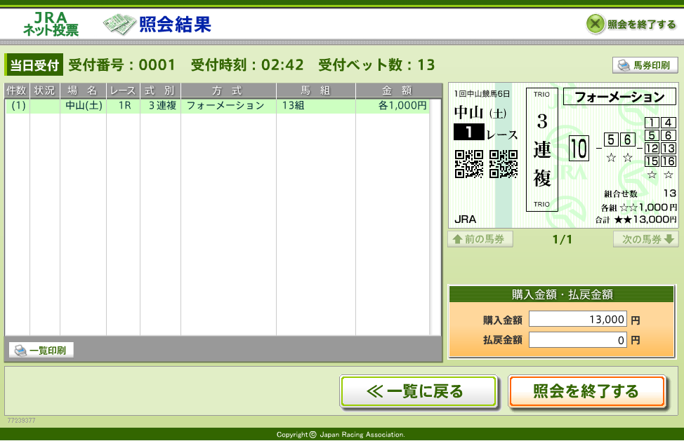 土曜日の1レースだけ先に購入しました。
