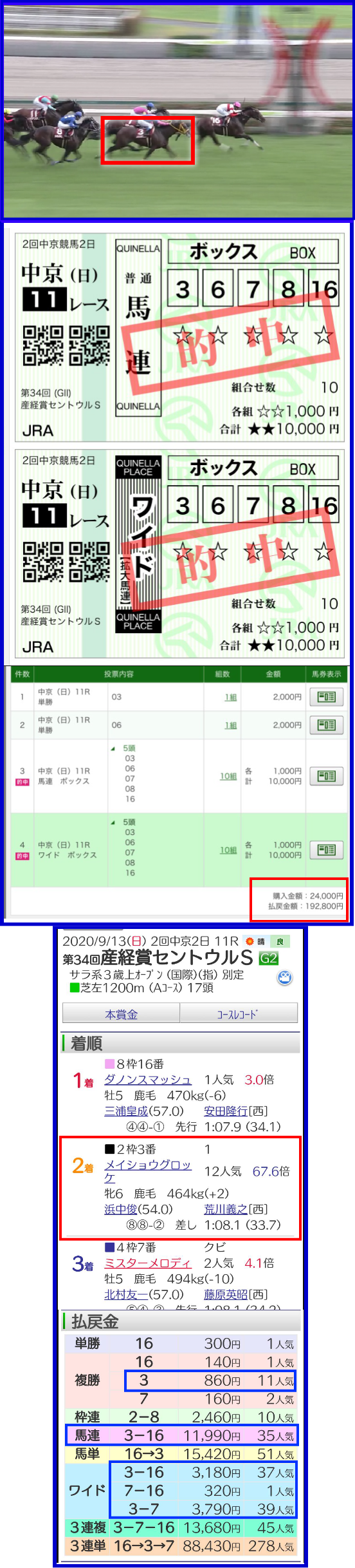 佐々木氏の先週のセントライト記念の馬券を無断で貼っておきます