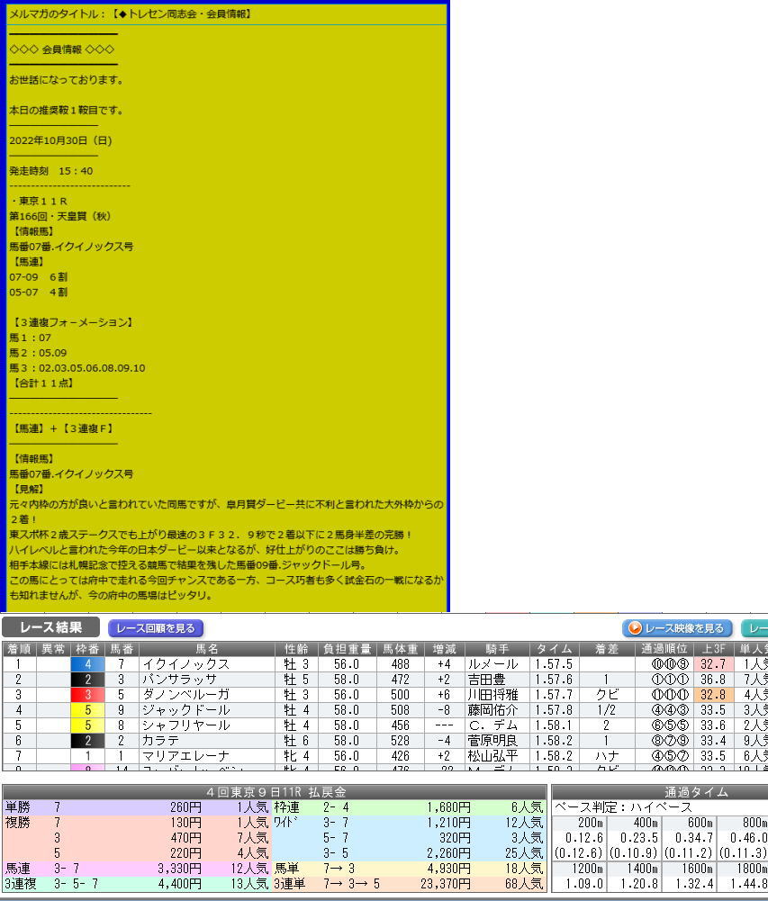 更に言えば天皇賞(秋)は昨年も例のネタ元からの情報だった訳ですから、