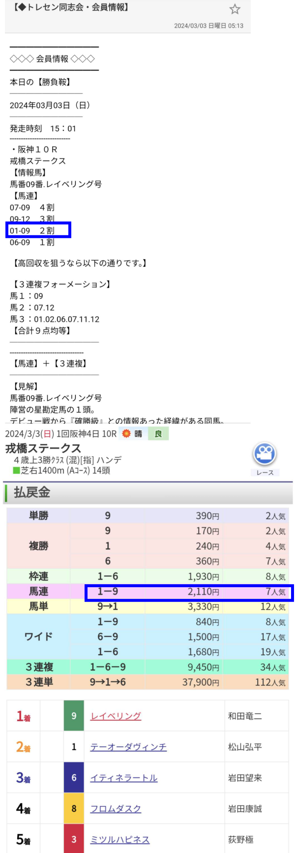 馬連2110円3点目2割的中!